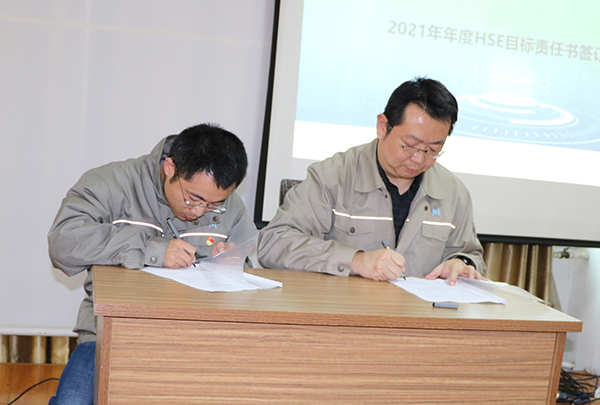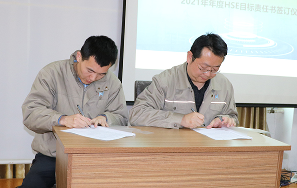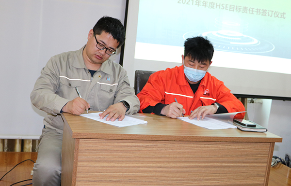 后公司總經理與生產管理部、HSE管理部,生產管理部與設備管理部,設備管理部與維修維保方簽署了年度HSE責任書。